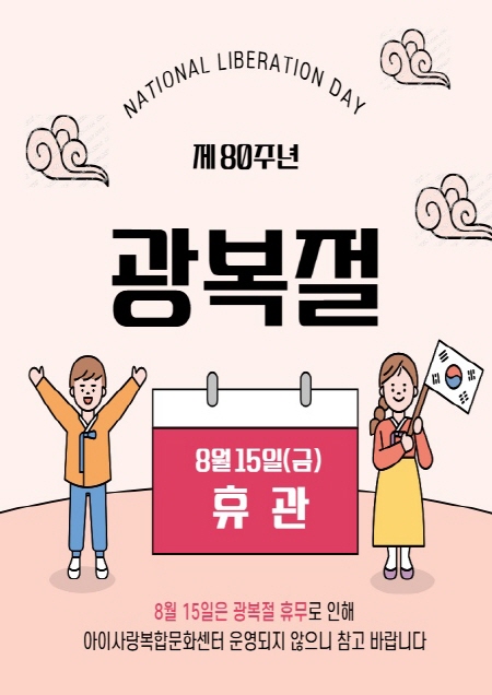 성동아이복합문화센터 8월15일(80주년 광복절) 휴관 안내.