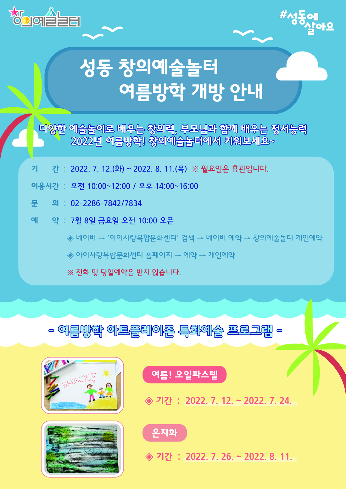 창의예술놀터 여름방학 개방 안내